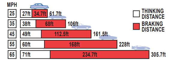 STOPPING DISTANCE: From eye to brain to foot to wheel to road