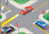 The following G1 Rules of the Road Practice Test questions will give you an idea of what to expect on the knowledge test. All knowledge-test questions follow this multiple-choice format. The answers to these sample questions are provided at the bottom of the page.